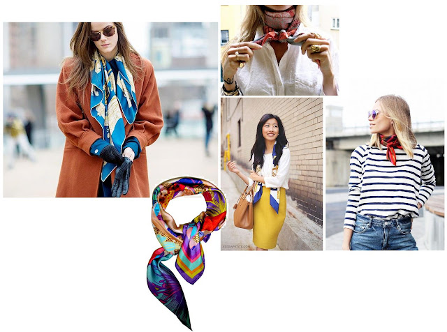 Esse lenços são tão elegantes, mas acho que não usaria, ficaria-me demasiado formal digamos... Mas bem conjugado pode dar um look bem giro!